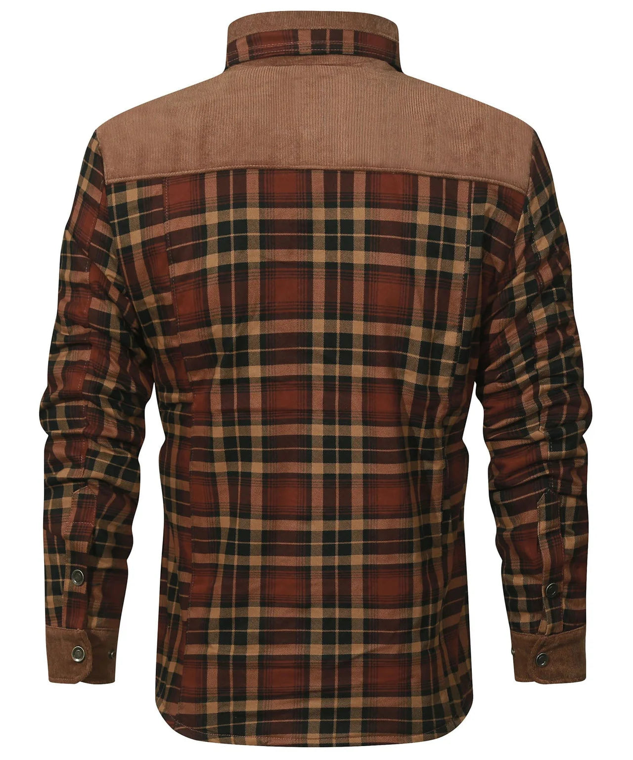 This men’s jacket is designed for cold and transitional weather, combining a classic plaid outer fabric with a warm sherpa lining. The interior provides insulation and comfort, while the structured exterior keeps a clean and rugged look suitable for everyday wear. A full snap button closure and stand collar offer added protection against the cold. Reinforced shoulder and cuff panels increase durability, making this jacket a reliable choice for daily use, outdoor activities, or casual layering during autumn and winter.
