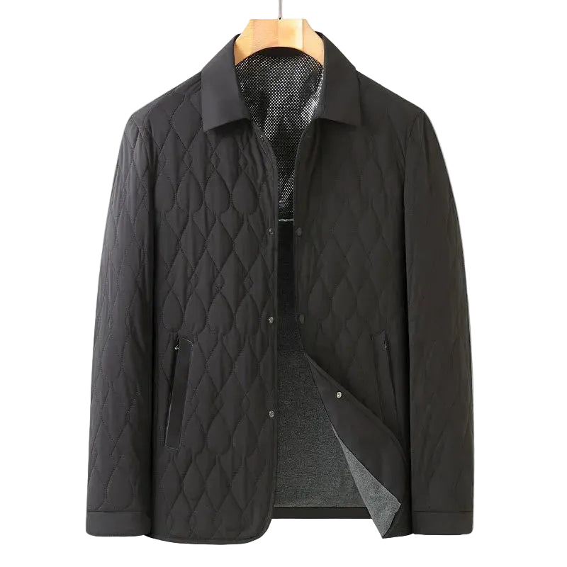 This men’s quilted jacket features a clean, diamond-stitched exterior designed for lightweight warmth and everyday comfort. The jacket is finished with a classic button-front closure and a structured collar, creating a refined yet casual look suitable for daily wear. Its streamlined silhouette makes it easy to layer over knitwear or shirts, making it an ideal choice for transitional seasons such as autumn and mild winter days.