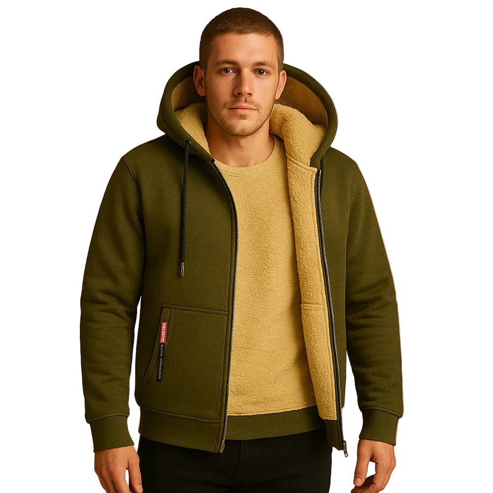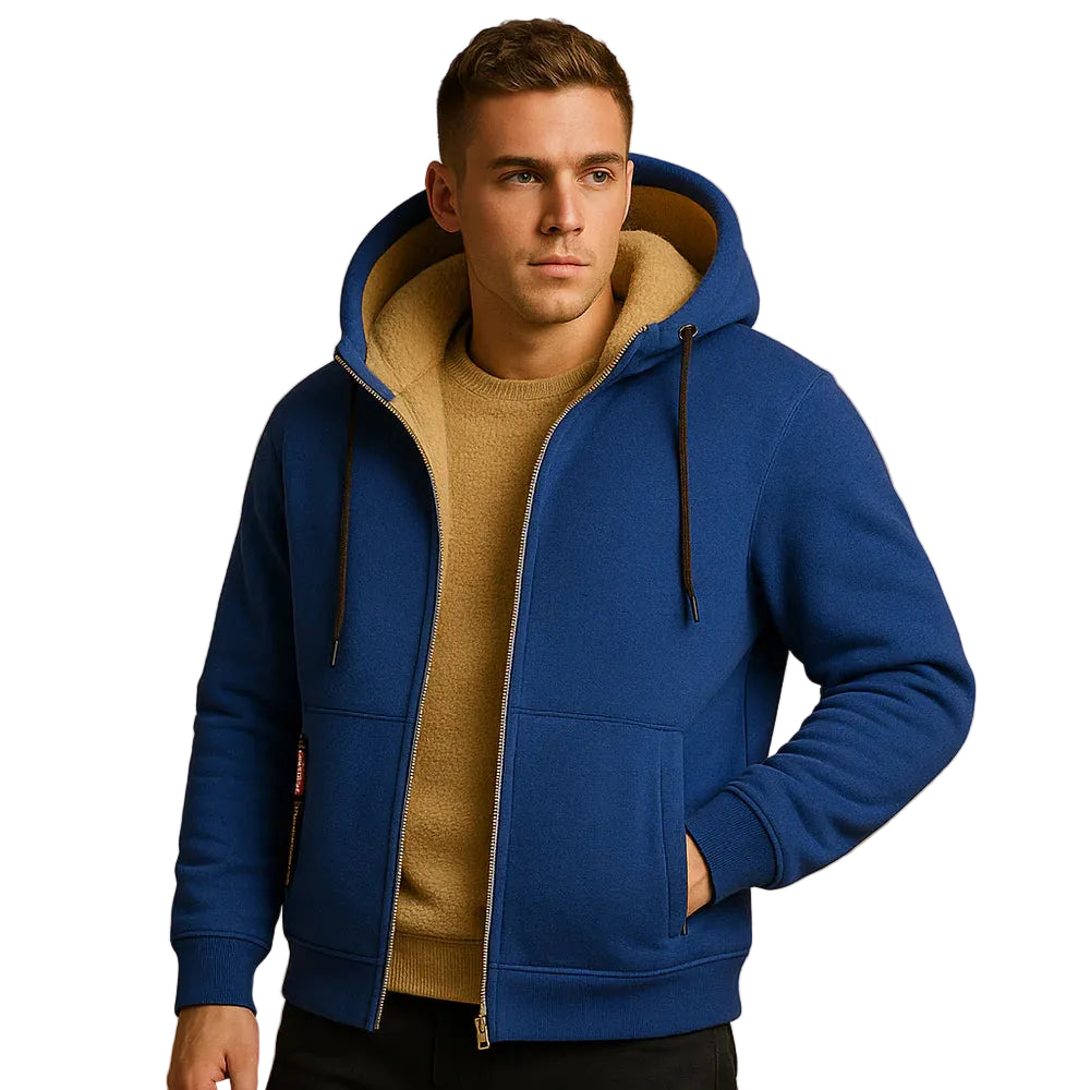 This men’s zip hoodie features a regular fit with a full length front zipper. The design includes an adjustable hood with drawstrings and long sleeves. The hoodie is finished with two front pockets and ribbed cuffs and hem.